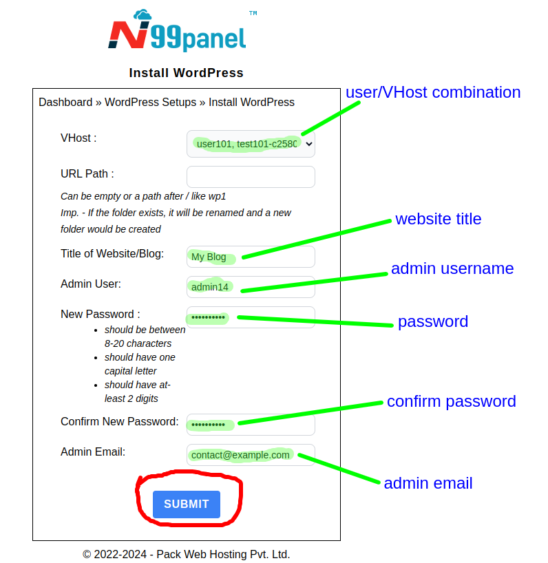 Step 2 : From under N99panel dashboard, click 'Install WordPress'