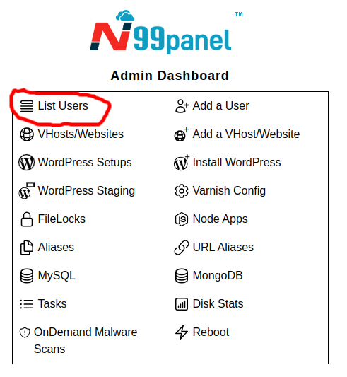 Step 1 : Log into N99panel. From under N99panel dashboard, click 'List Users'