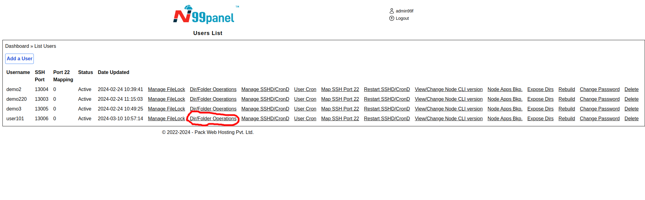 Now within N99panel, we have also implemented ‘Dir/Folder Operations’ under user accounts.