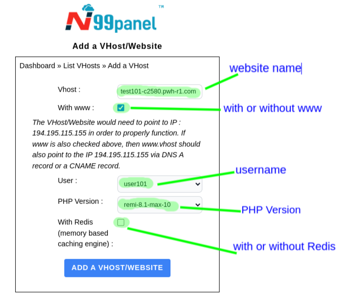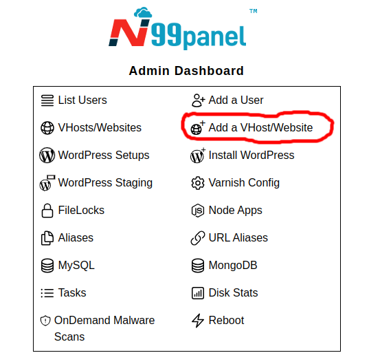 Adding a VHost/Website under N99panel
