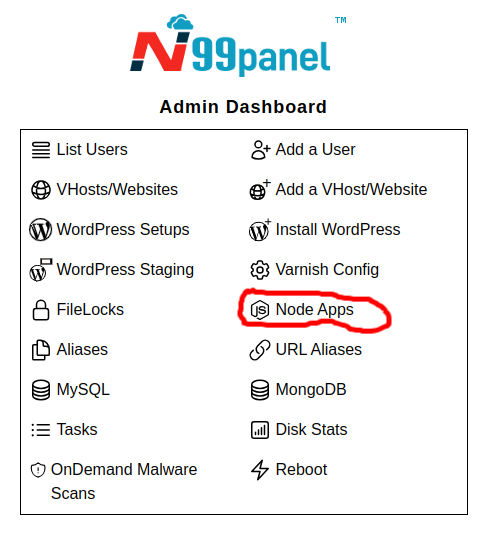Step 1 : Log into N99panel. From under N99panel dashboard, click 'Node Apps'