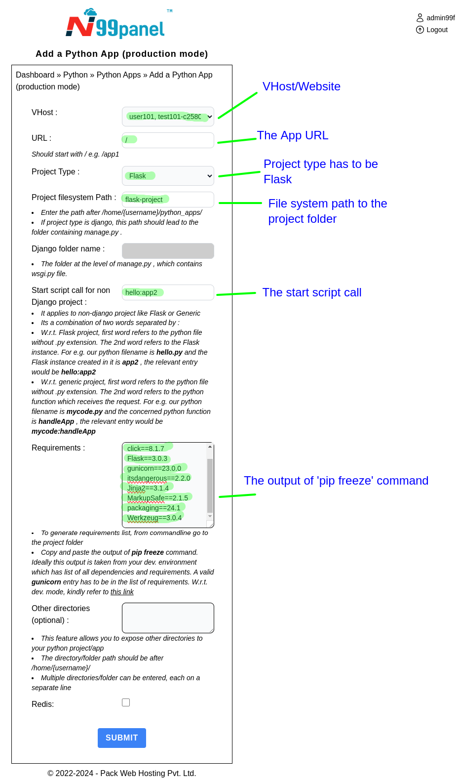 Step 4 : Then enter details of your Flask App as explained below