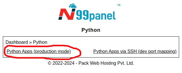 Step 1 : Log into N99panel and click on 'Python'