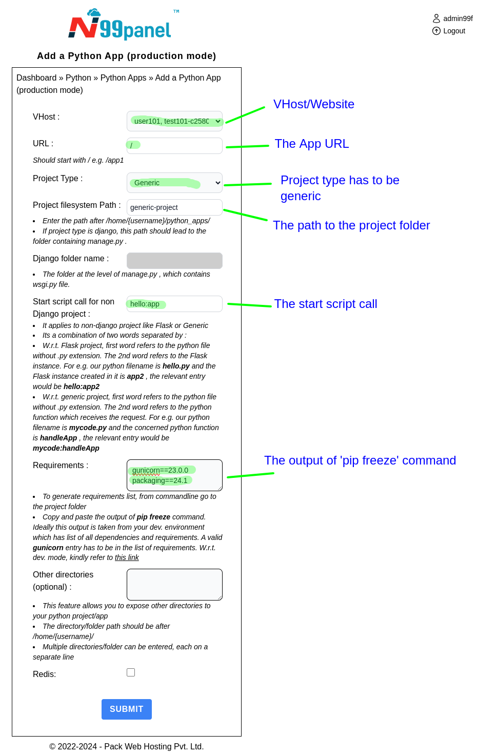Please ensure that you have successfully run you app in development mode before putting it in production mode. To learn more about running Python apps in development mode, please checkout out this article : https://docs.n99panel.com/doku.php?id=python:dev-mode