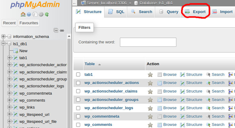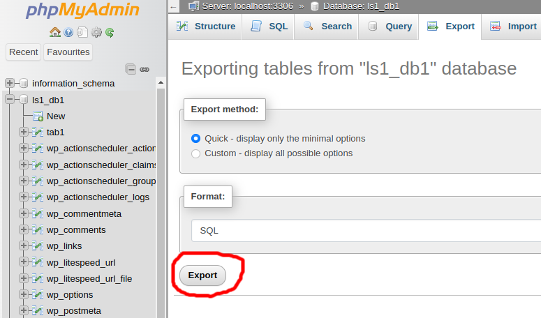 Refer to the screenshots of PHPMyAdmin in order to make backup of the SQL file